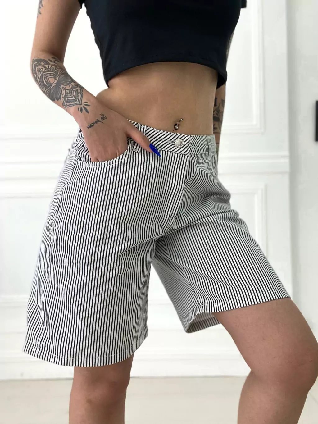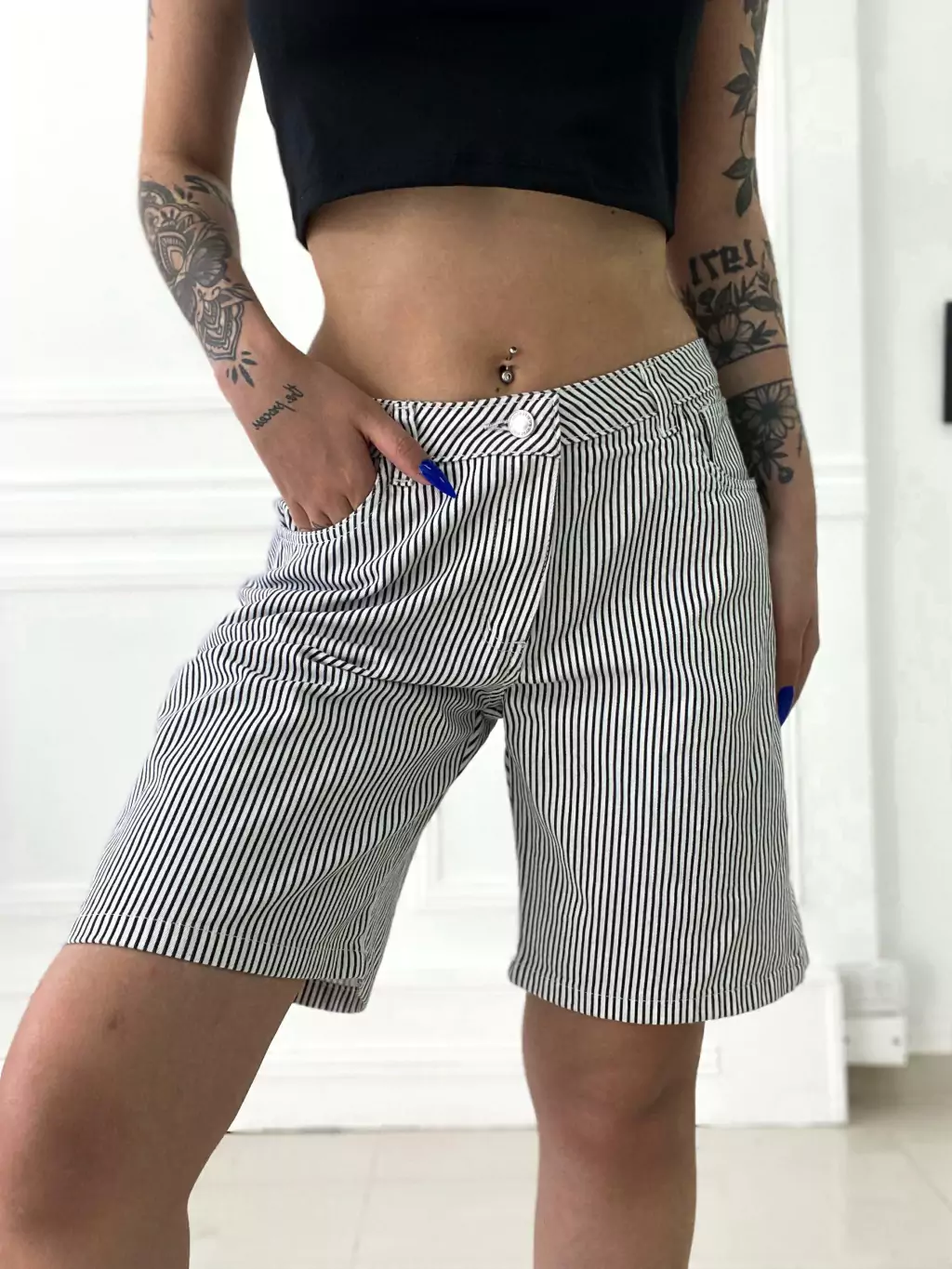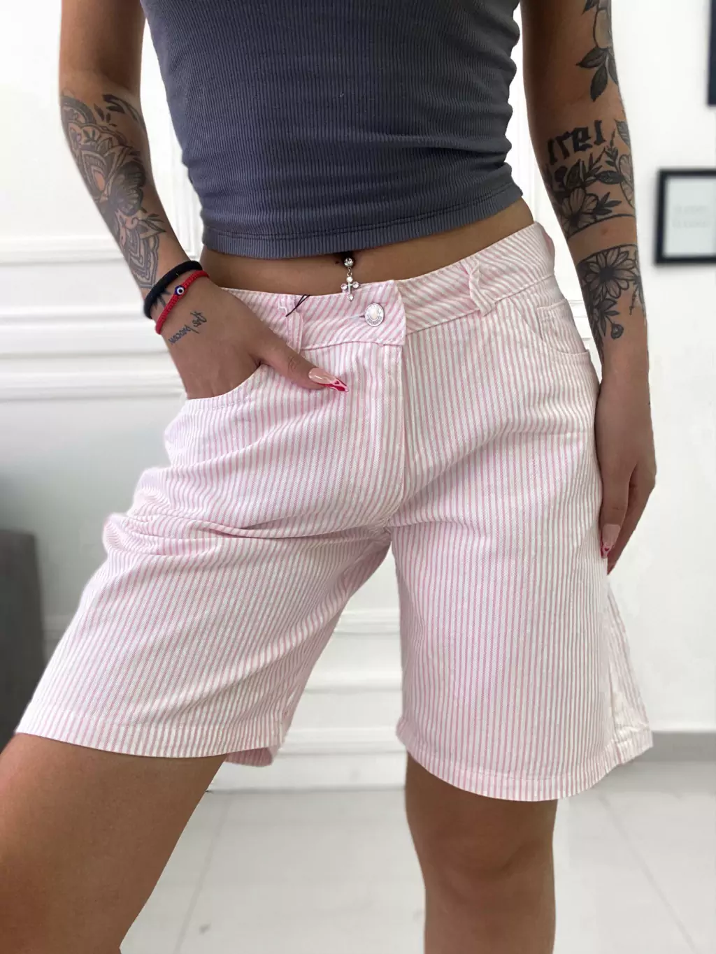 Bermuda Rayada de gabardina, tiro medio - EMBRUJO