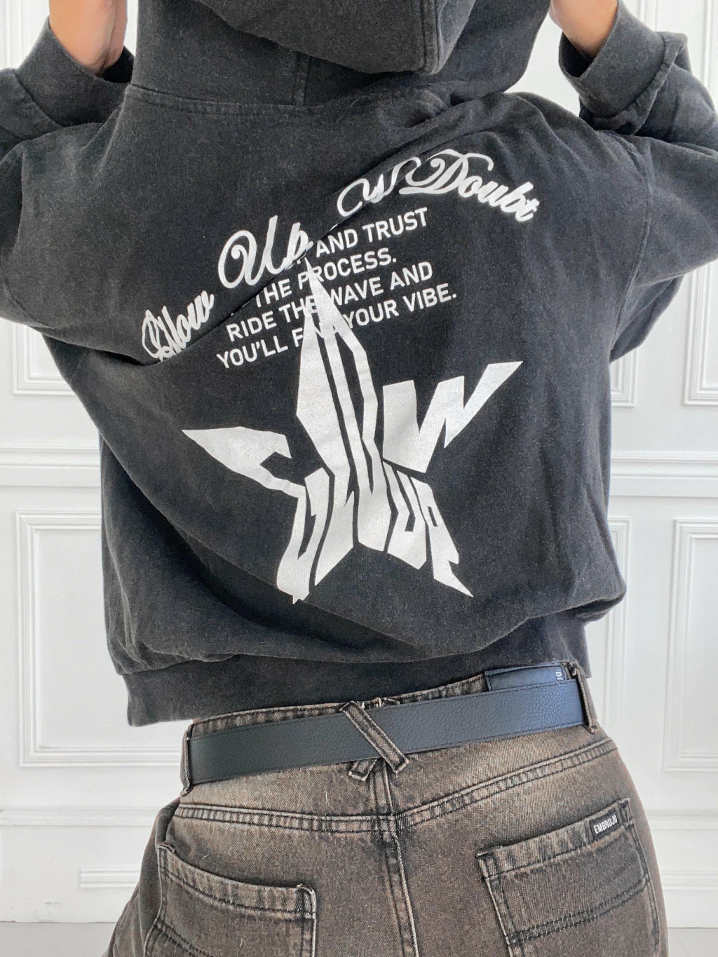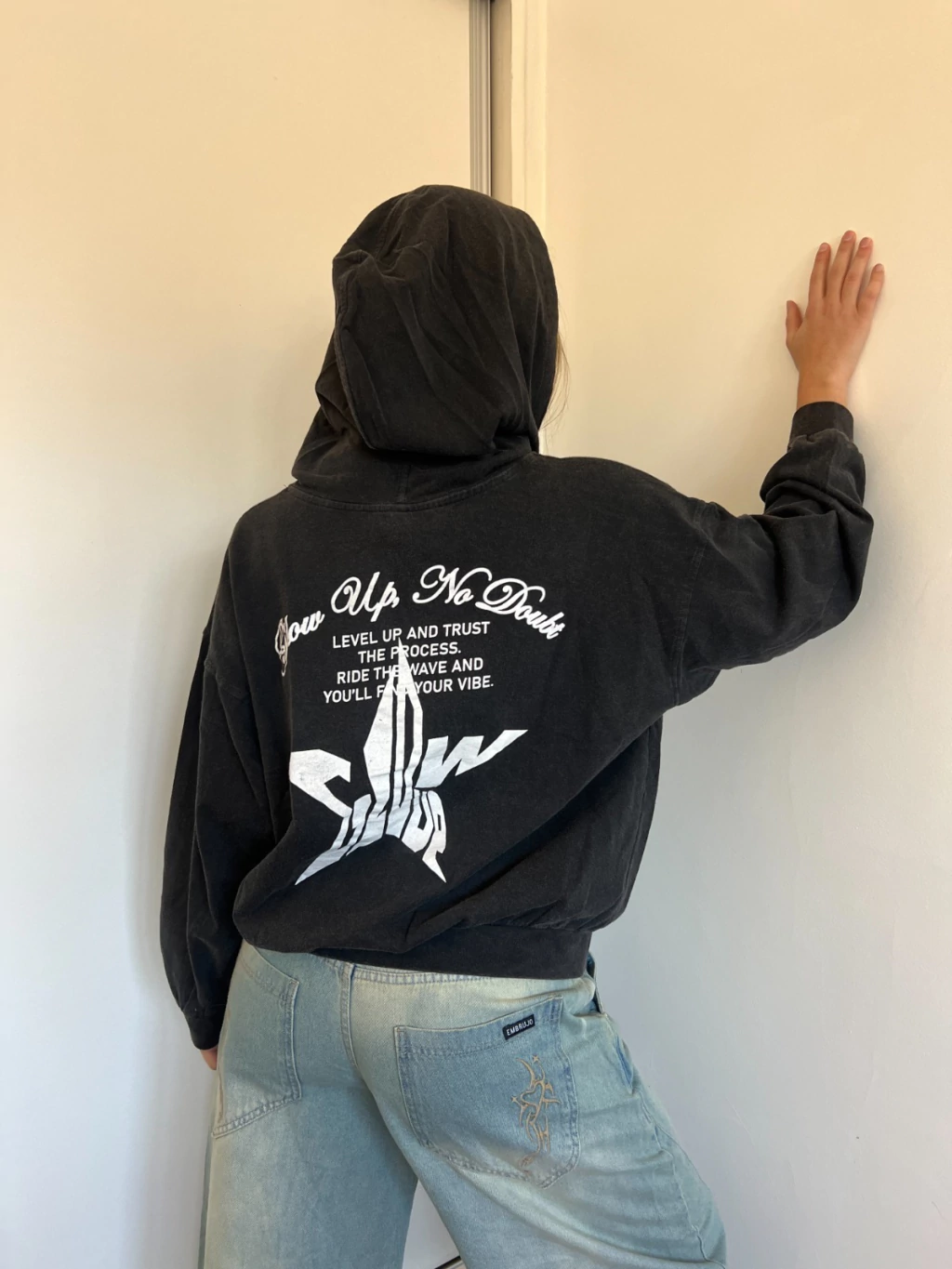 El Buzo Oversize GLOW UP! de EMBRUJO es la prenda que eleva tus looks urbanos. Confeccionado en algodón rústico y tono negro lavado, brinda comodidad y un estilo auténtico. Su estampado “GLOW UP!” aporta un detalle moderno y distintivo.
