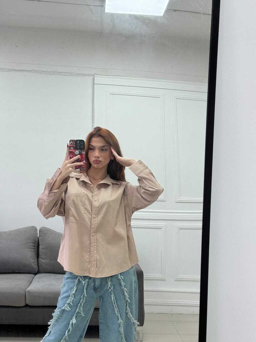 Camisa Oversize Poplyn lycra con bolsillo - EMBRUJO