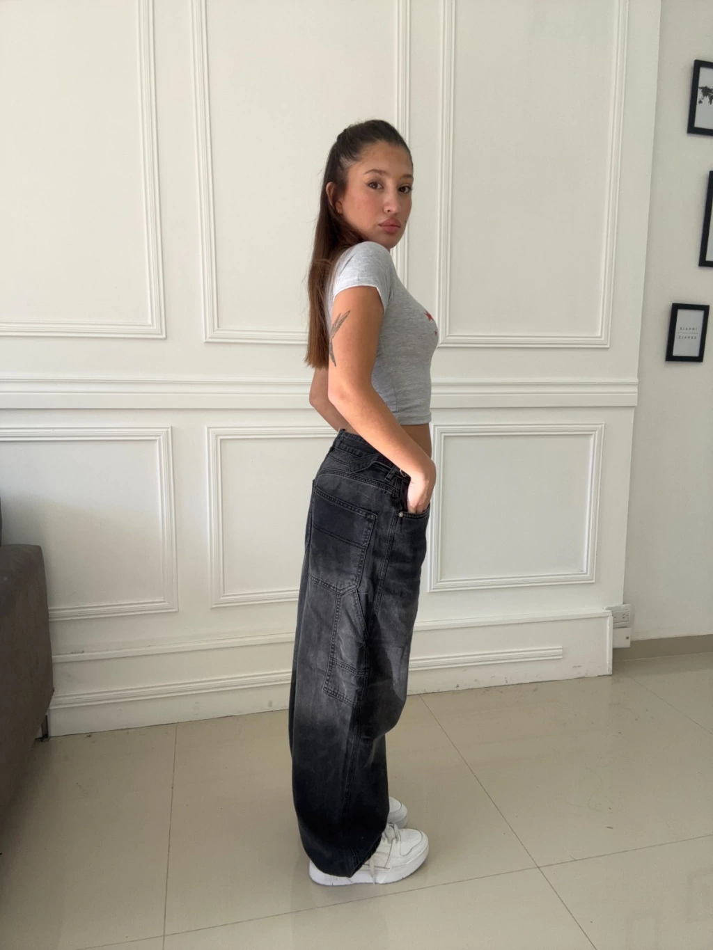 Descubrí el Jean Negro EMBRUJO: diseño moderno con hebilla en la cintura y detalles de bigote localizado que realzan su estilo. Su tiro medio y corte favorecedor garantizan comodidad y elegancia para cualquier ocasión.