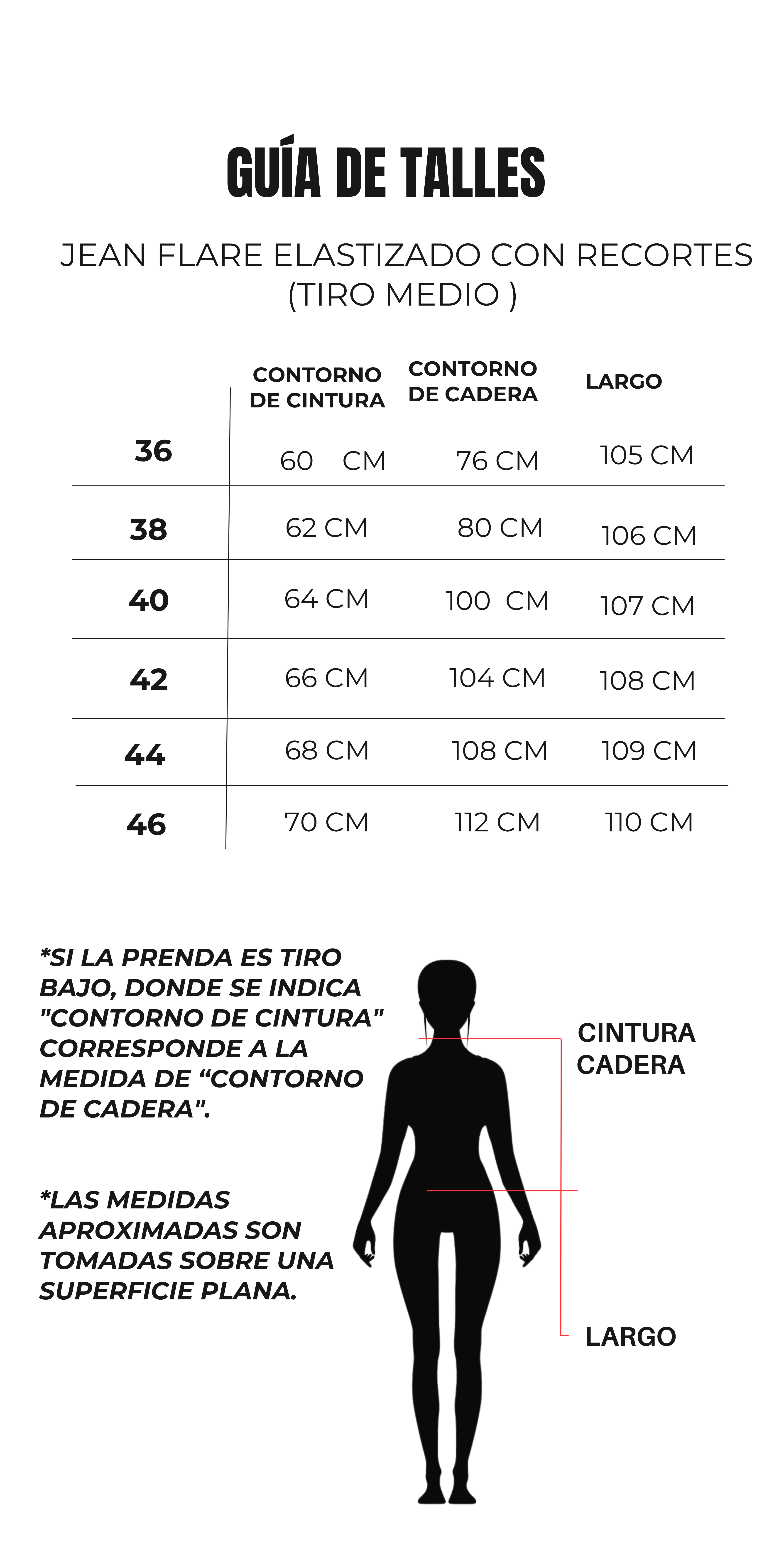 Jean Flare Elastizado con Recortes: Moderno y cómodo, en color denim azul. Su diseño elastizado se adapta a tu figura y el corte flare estiliza tus looks. Disponible en talles 36 al 46. ¡Sumá tendencia a tu guardarropa!