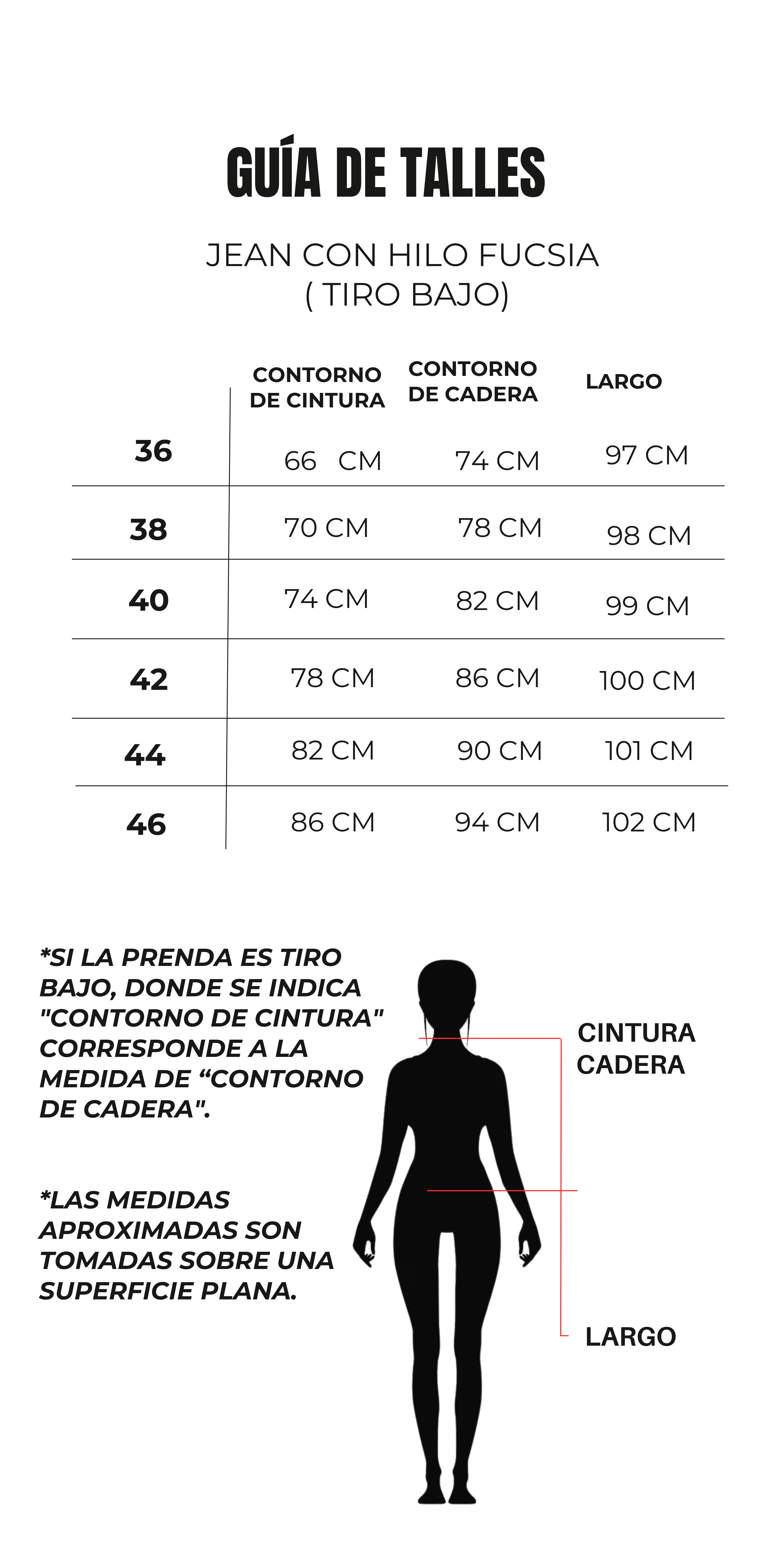 Flare tiro bajo en denim azul con detalle en hilo fucsia. Disponible en talles 36 al 46.