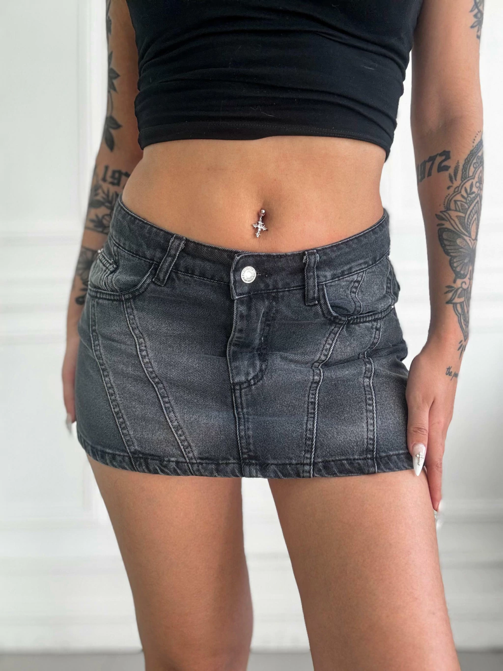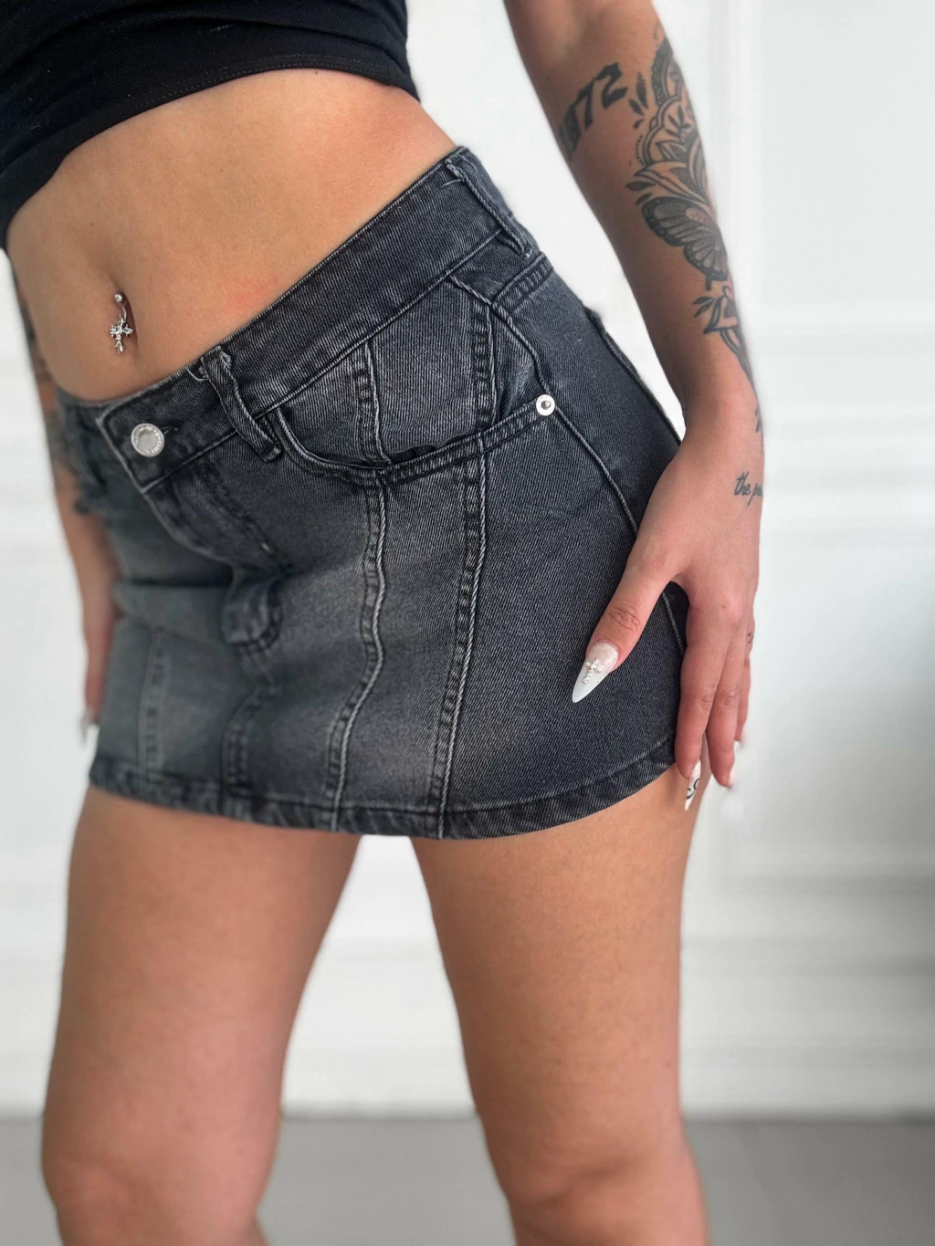 La Mini Negra con Recortes es la prenda perfecta para quienes buscan un estilo urbano y actual. Confeccionada en denim negro, su diseño con recortes realza la silueta y suma un toque moderno a cualquier conjunto. Disponible en talles del 36 al 52, es ideal para renovar tu guardarropa con personalidad y tendencia.