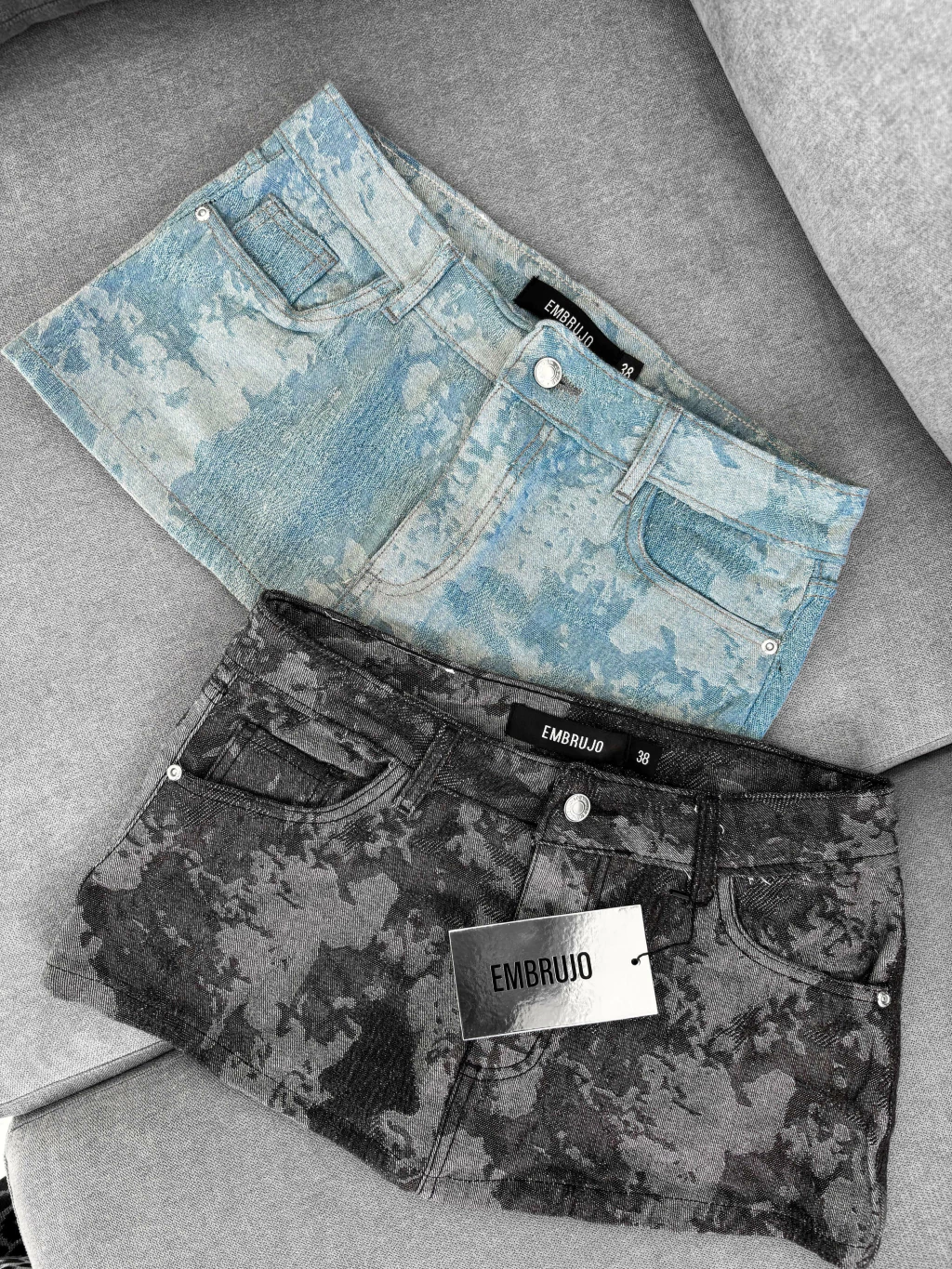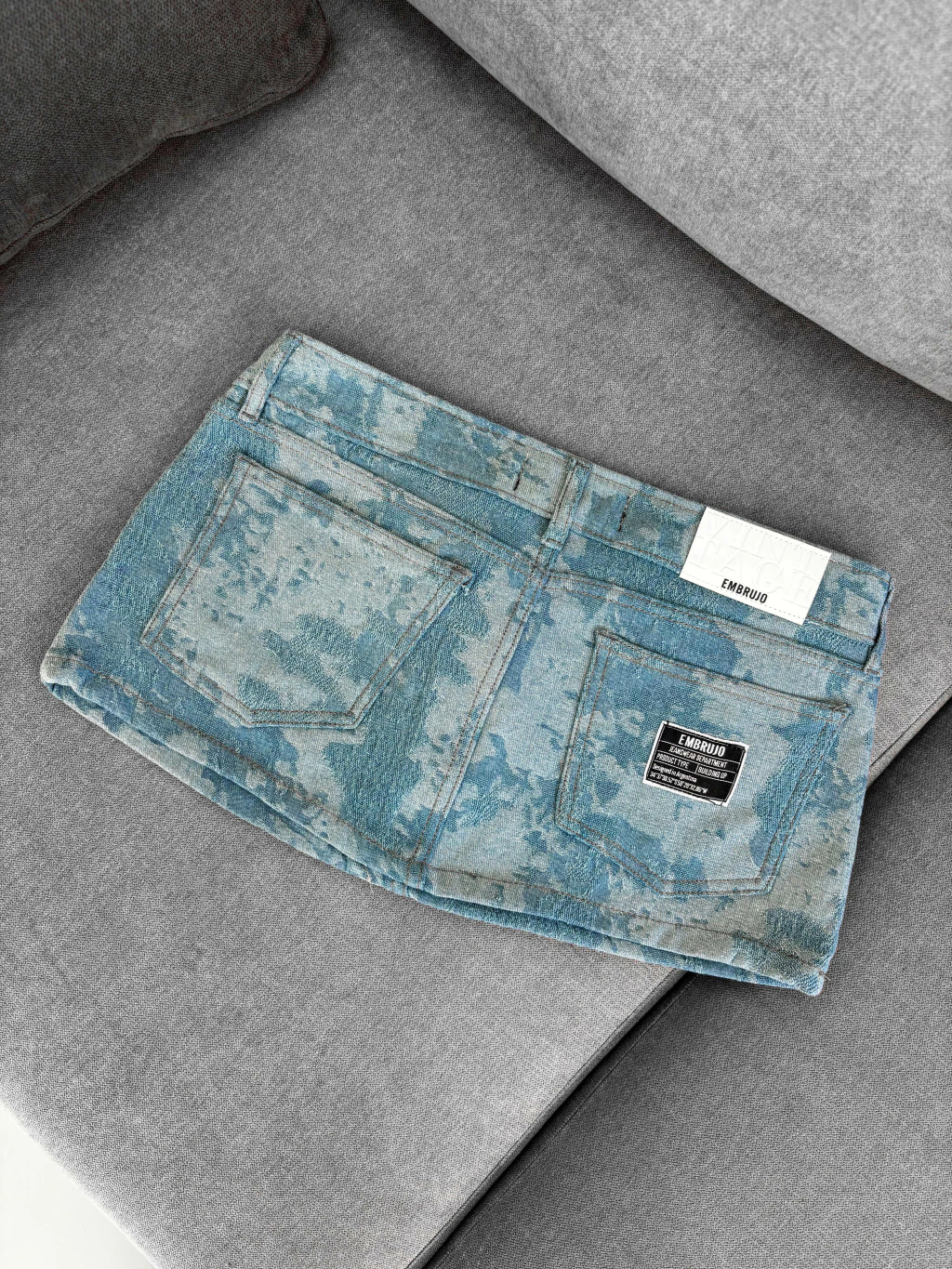 Mini de Jean diferenciado, camuflado, rigido, tiro bajo - EMBRUJO
