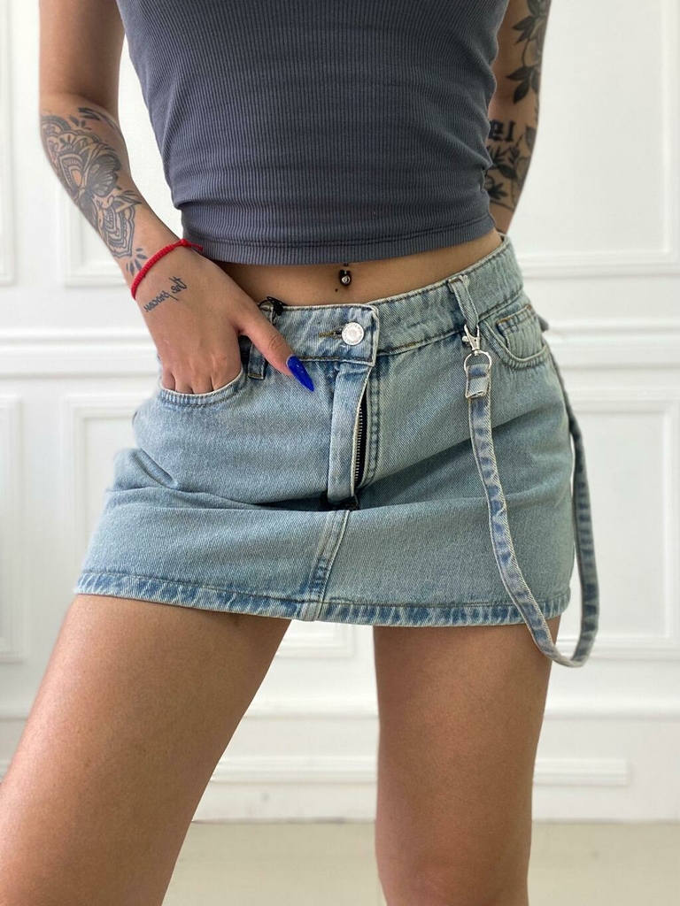 La Mini KHALID de EMBRUJO es la opción ideal para quienes buscan un toque sofisticado y moderno. Confeccionada en denim negro, corte clásico y tiro medio, destaca por su tira y hebilla exclusiva. Su diseño versátil realza cualquier look y se adapta perfectamente a tu estilo.