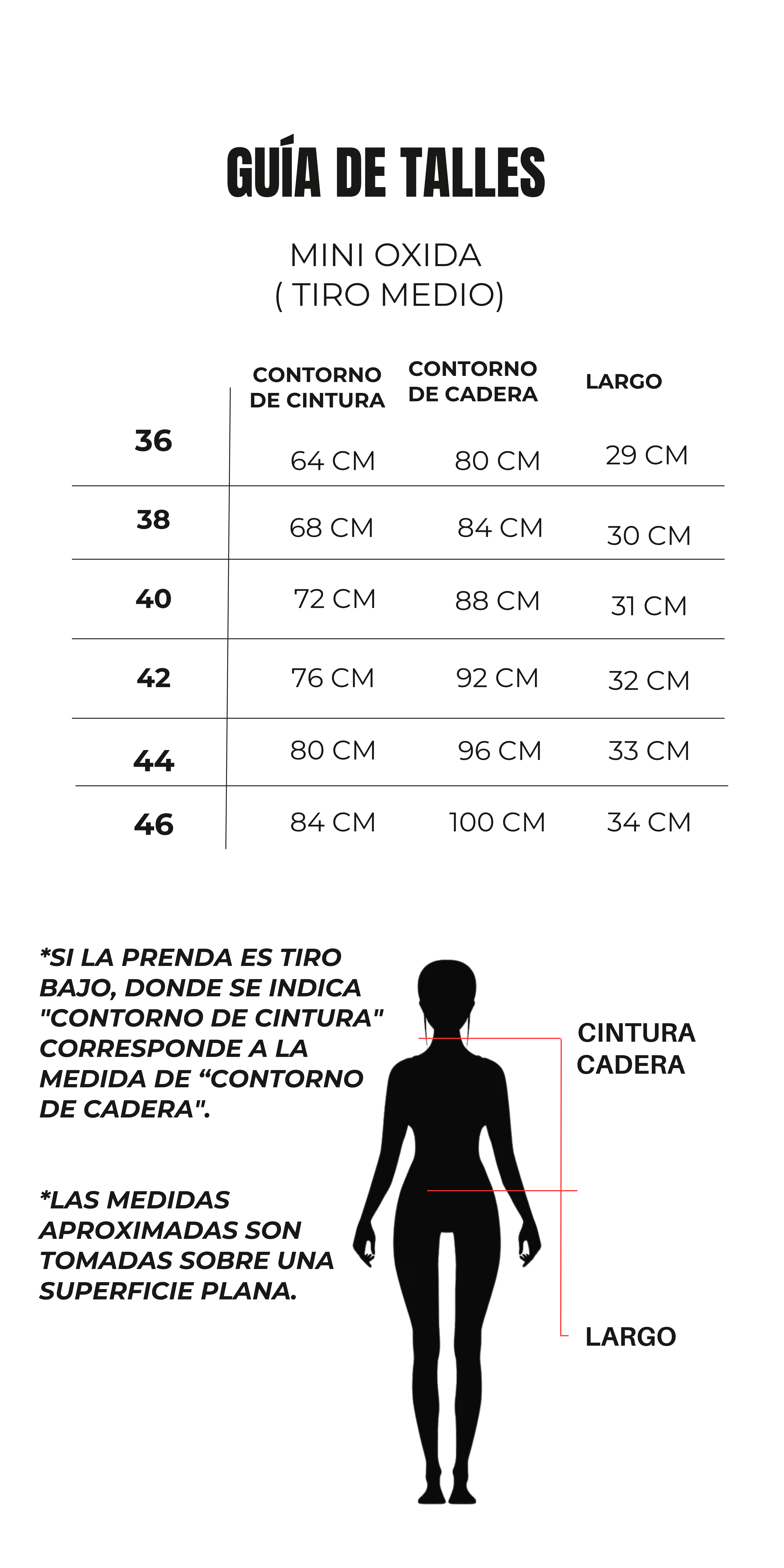 Mini Oxida Rígida: falda corta en denim oxido para un look moderno. Disponible en talles 36 al 46.