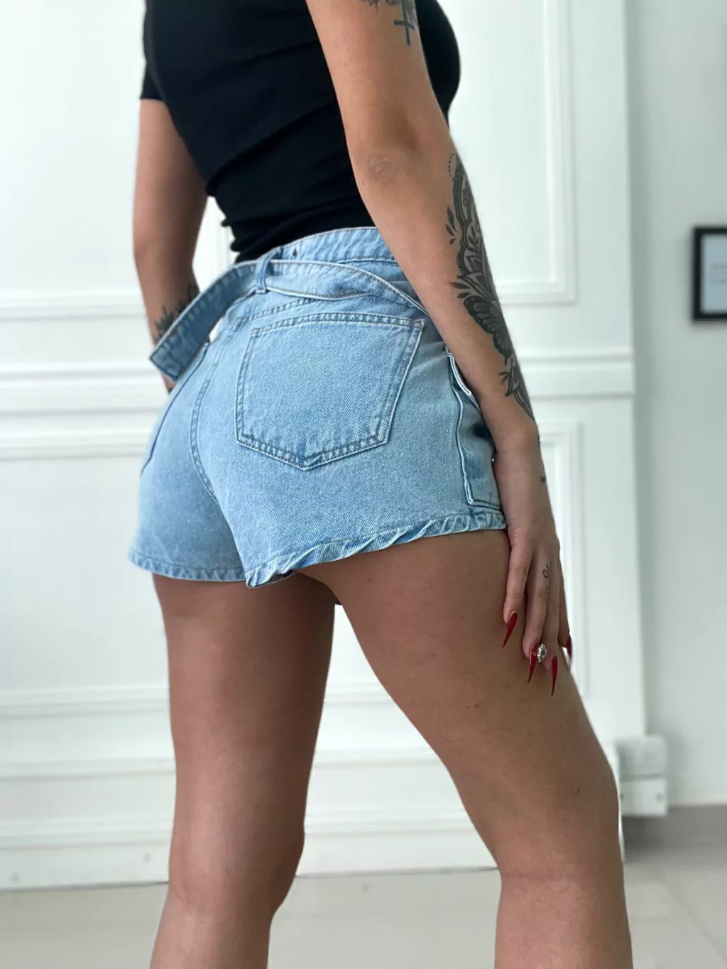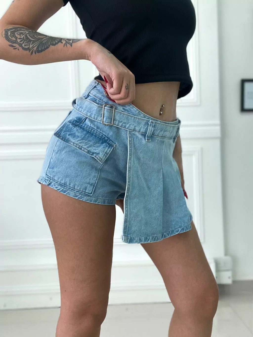 Short pollera "BALI" de jean cargo, con cinto, tiro medio - EMBRUJO