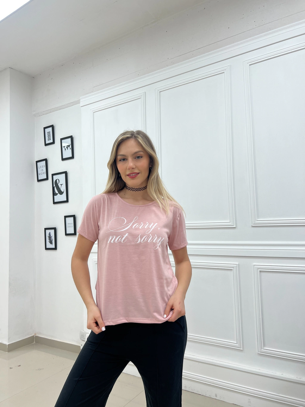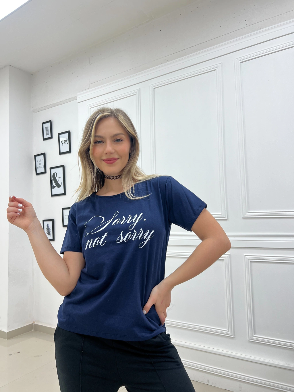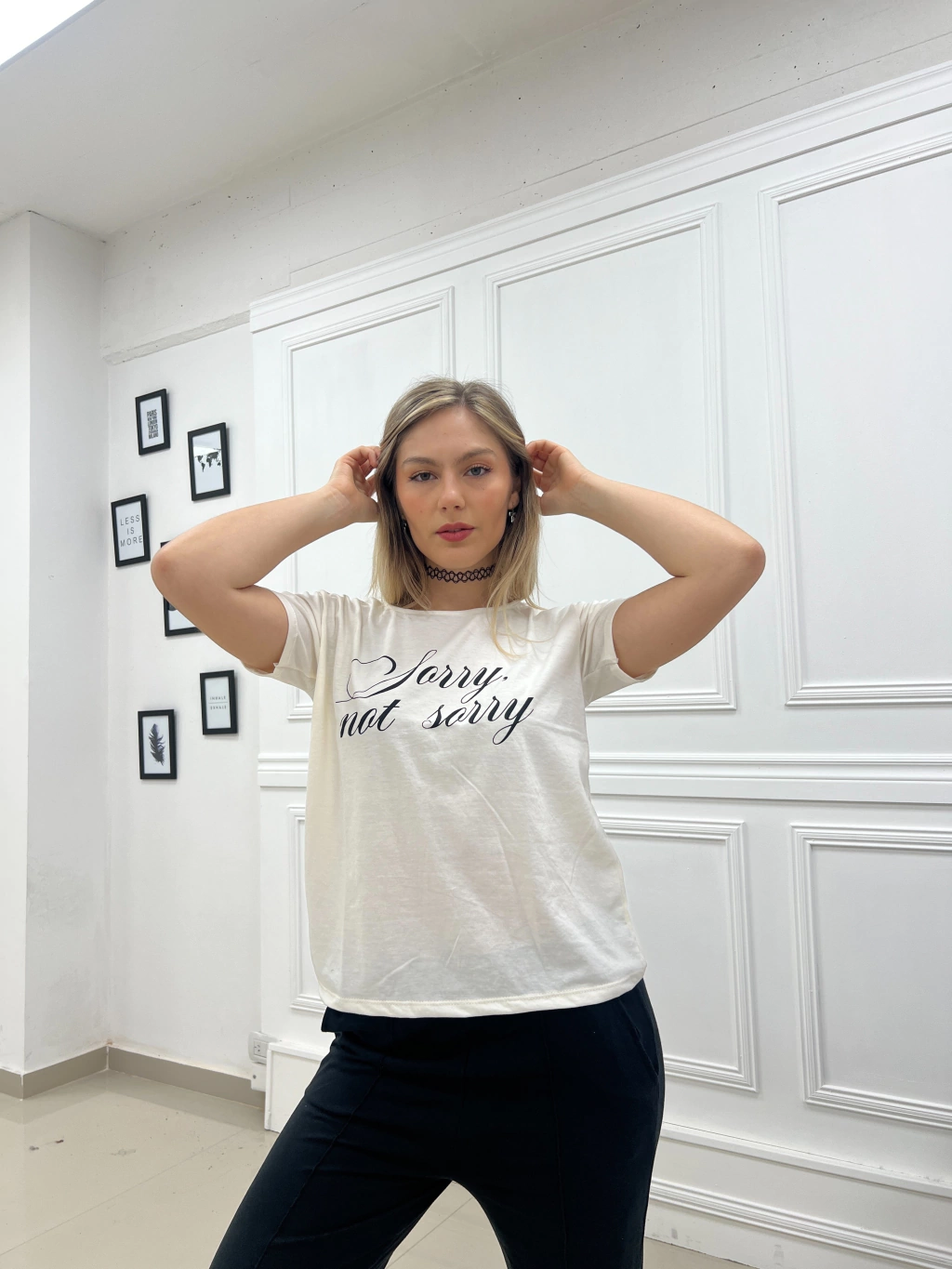 La Remera "SORRY, NOT SORRY" de EMBRUJO combina algodón y lycra para lograr una textura suave y cómoda. Su corte clásico realza cualquier look, fusionando estilo y autenticidad.